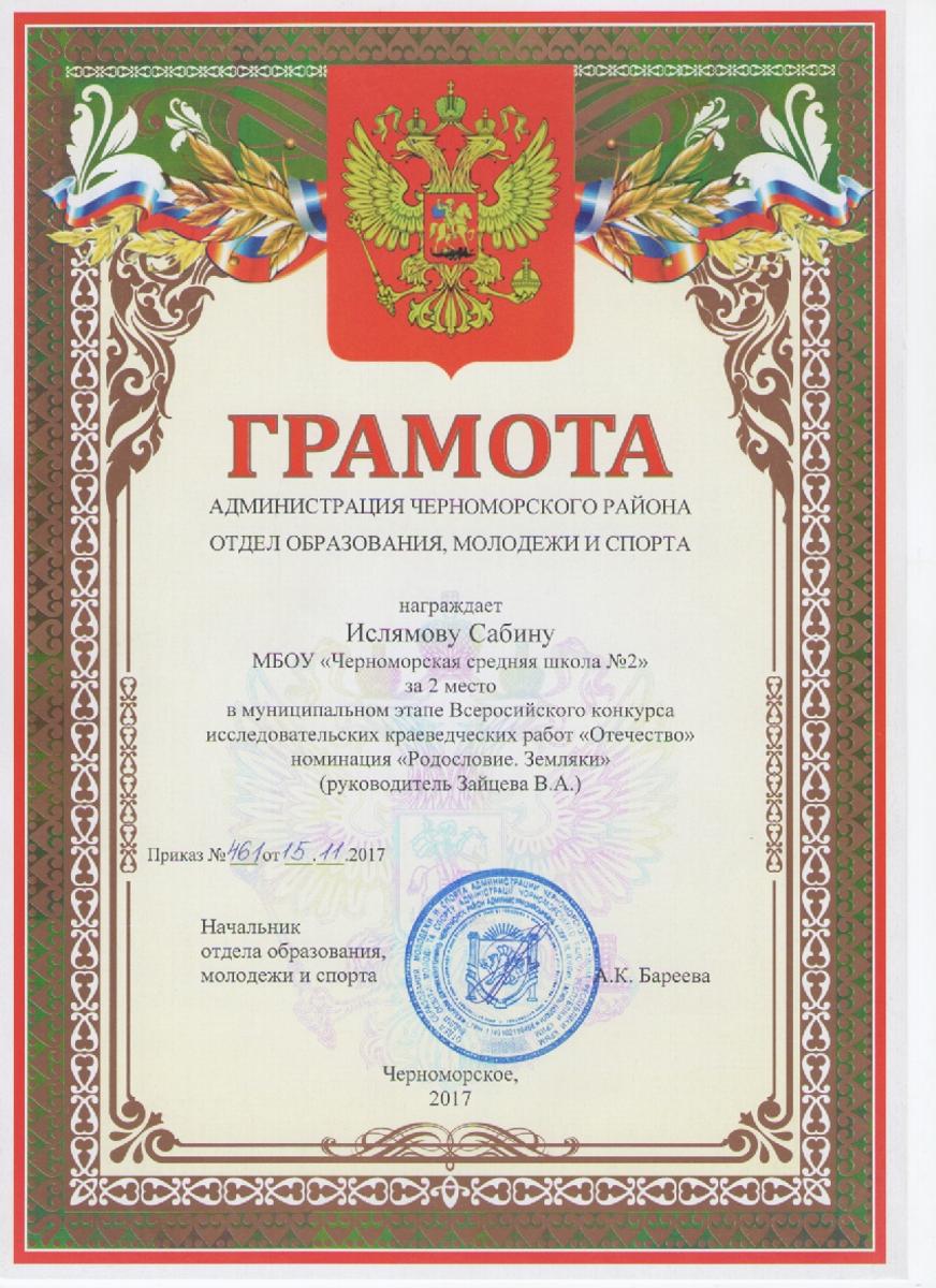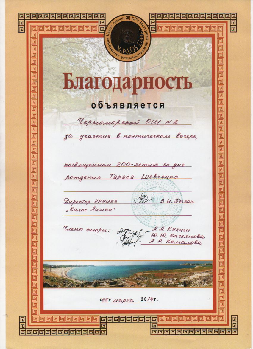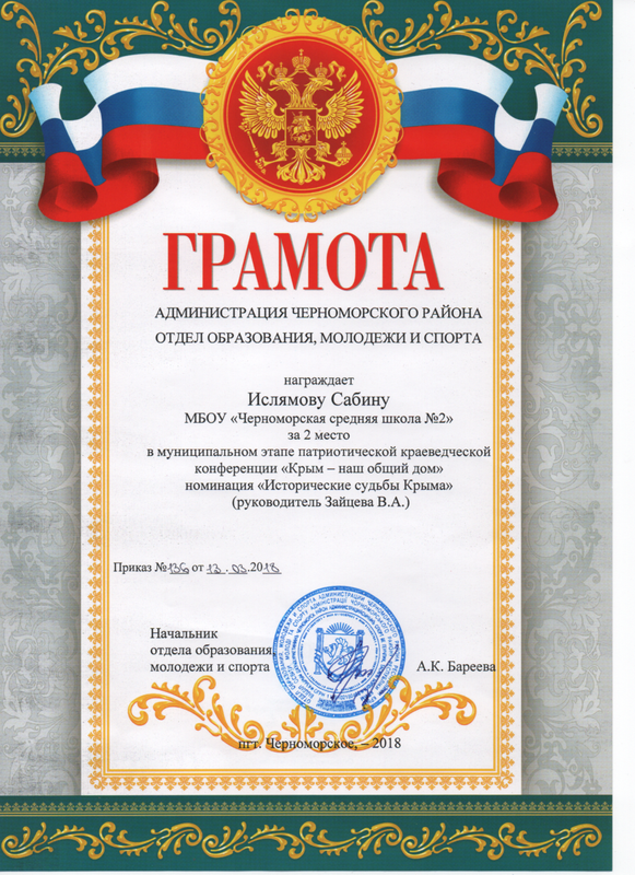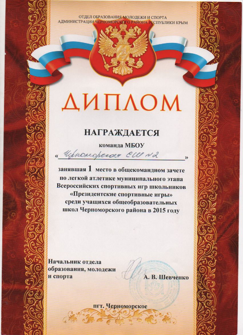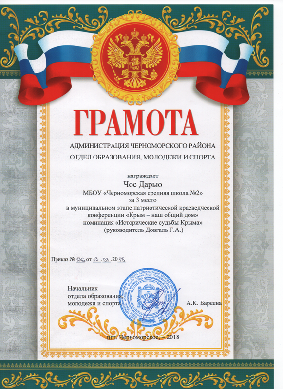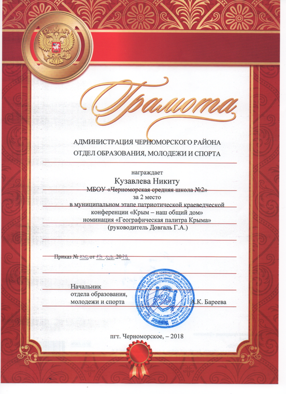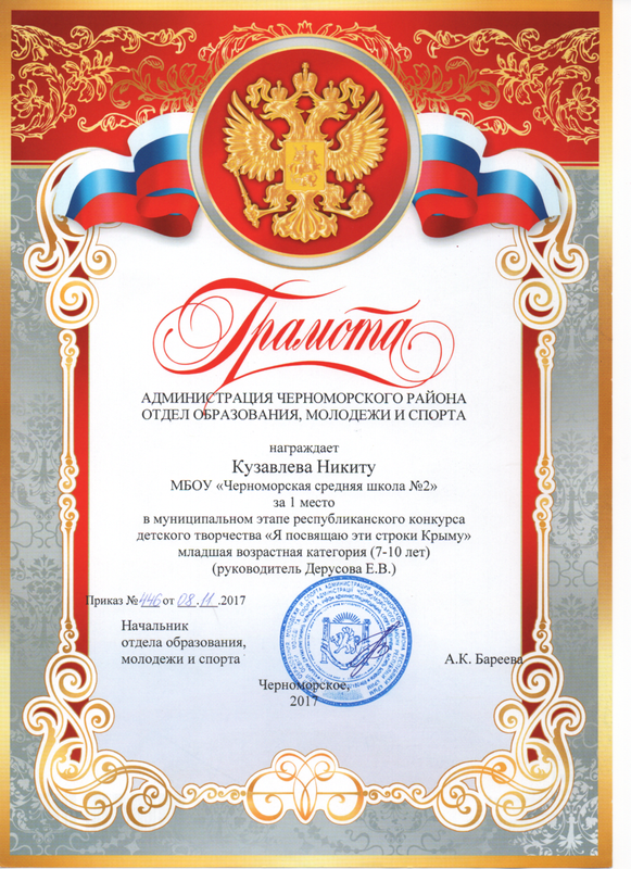 Муниципальное бюджетное общеобразовательное учреждение «Черноморская средняя школа № 2 имени Жданова Алексея Кузьмича» муниципального образования Черноморский район Республики Крым