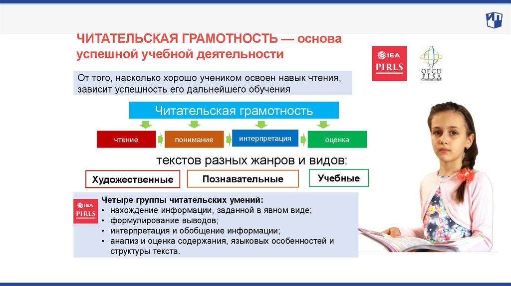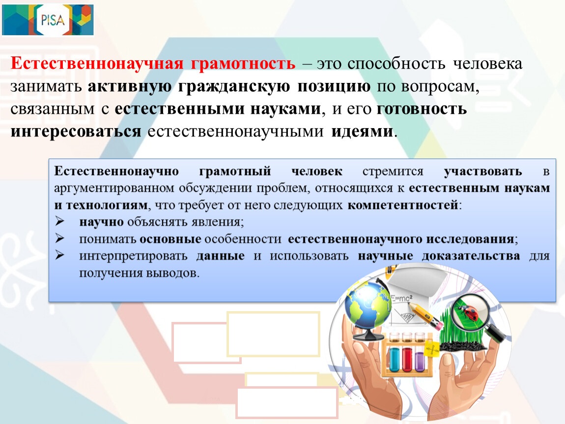 Качество образования PISA изучает по четырём основным направлениям: читательская, математическая, естественно-научная и компьютерная грамотности.