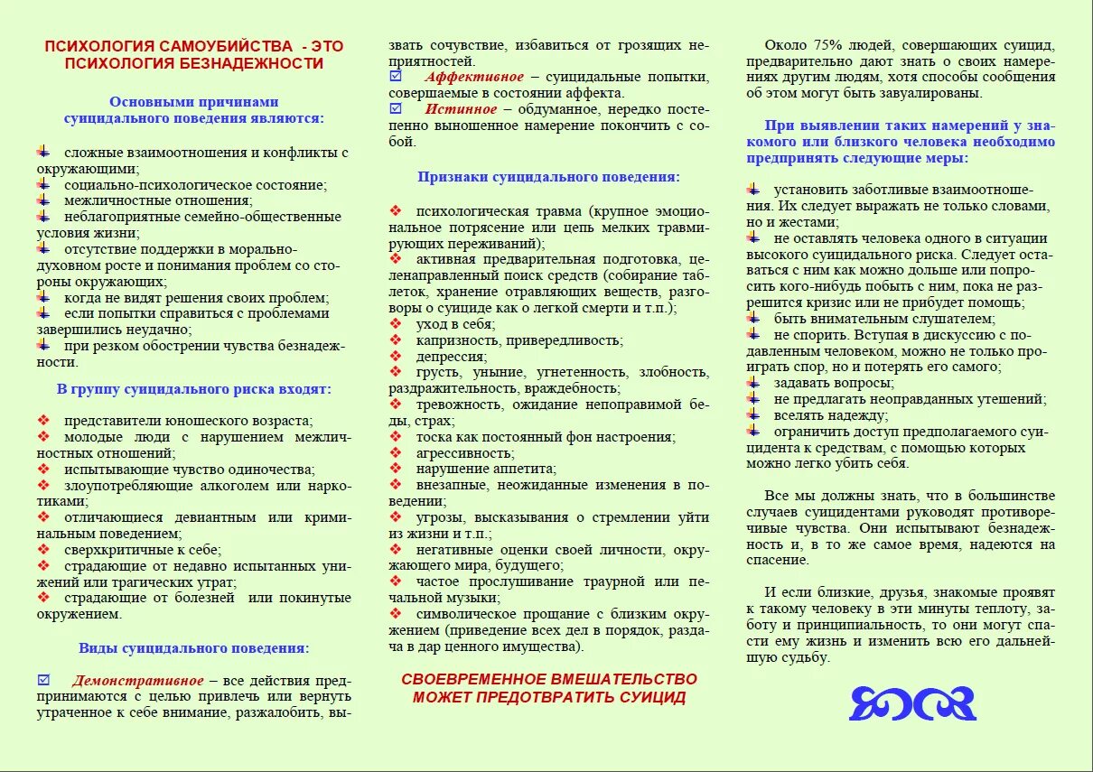 Профилактика суицидального поведения